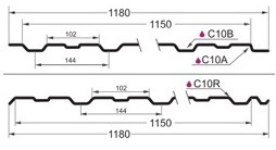 Профнастил С10 отлично подходит для возведения крепких ограждений. Данный вид наиболее экономичен среди кровельных профилей. Профлист С10 обладает достаточной прочностью благодаря повышенному количеству ребер жесткости. Используется при обустройстве кровли с крутым углом наклона. Отличительная черта внешнего вида профлиста С10 — разновысотные трапеции. В наличии есть оцинкованный и окрашенный профнастил, в том числе с двух сторон.